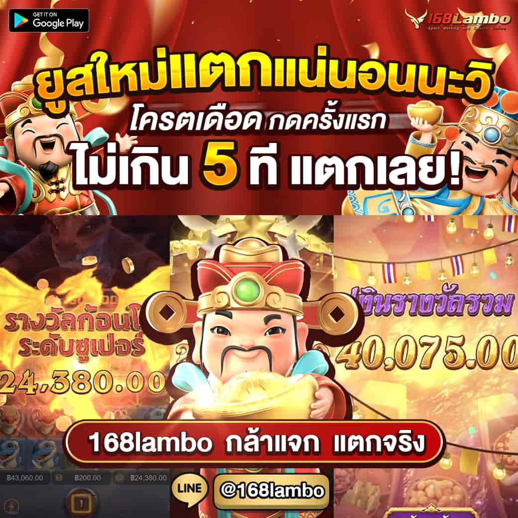 สมัครสมาชิกรับฟรีเครดิต เงินรางโบัสมหาศาลเล่นได้ทุกรูปแบบเปิดประสบการณ์การเดิมพันใหม่ๆได้แล้ววันนี้เป็นต้นไปกับ เว็บพนันออนไลน์ อันดับหนึ่ง 168lambo ฝากถอนโอนไว หลายๆท่านที่ต้องการความสะดวกความรวดเร็วในการเดิมพันหมดปัญหาเรื่องแอดมินตอบช้า หรือระบบธนาคารขัดข้องบ่อย มาเป็นส่วนนึ่งกับเรารับประกันความคุ้มค่าที่สุด เกมออนไลน์สุดสนุก เล่นได้ทุกเกมในเว็บ ตอบโจทย์นักพนันออนไลน์ทุกท่านที่ชื่นชอบการเดิมพันที่แปลกใหม่ มีการอัพเดตอยู่ตลอดเวลาแบบไม่หยุดนิ่งทำให้สมาชิกทุกท่านสามารถทำกำไรจากเราได้ง่ายๆเมื่อเทียบกับเว็บเดิมพันออนไลน์ที่อื่น เว็บของเราสามารถทำกำไรได้อย่างง่ายดาย